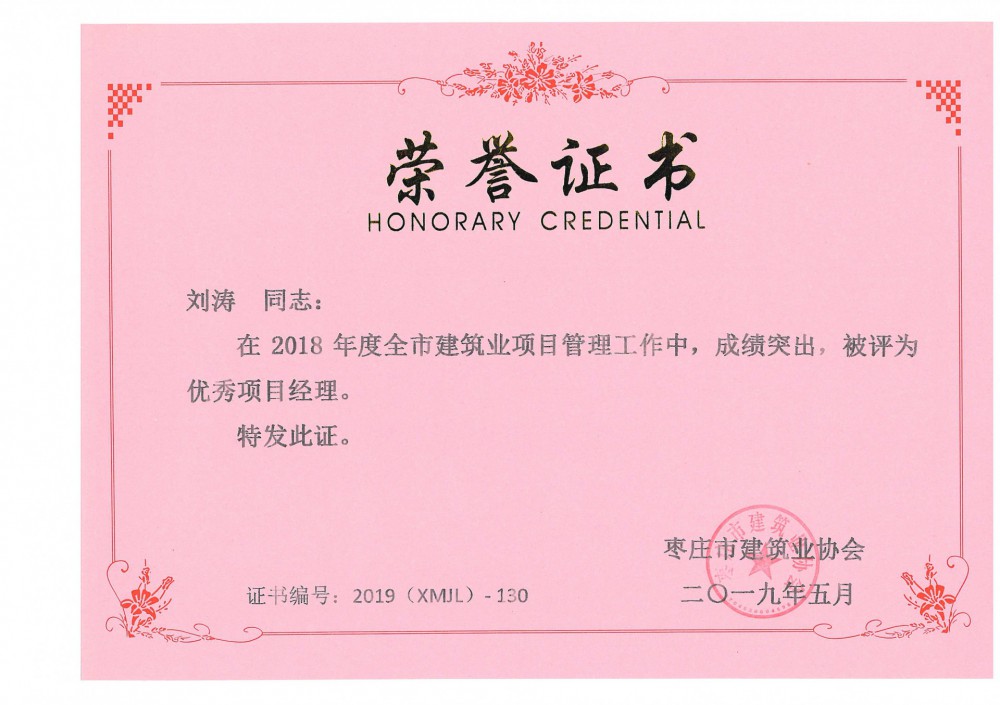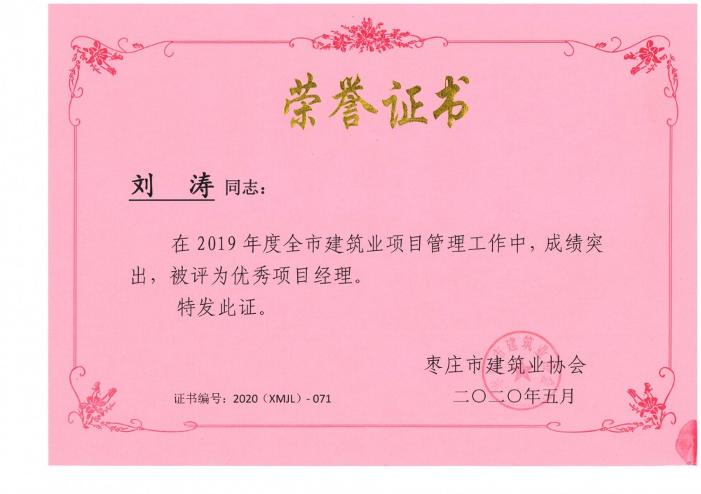 劉濤-2019年度市級優(yōu)秀施工企業(yè)及項目經(jīng)理