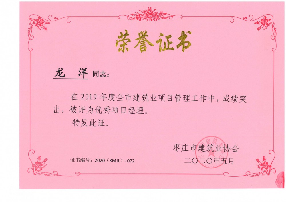 龍洋-2018年度市級優(yōu)秀施工企業(yè)項目經(jīng)理