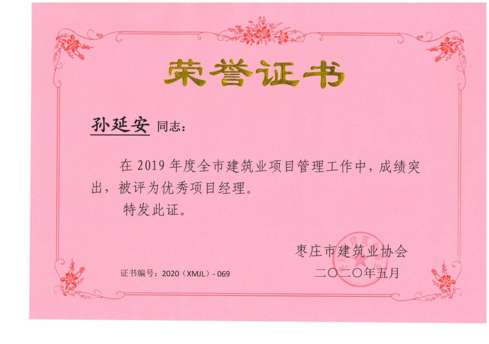孫延安-2019年度市級優(yōu)秀施工企業(yè)及項目經(jīng)理