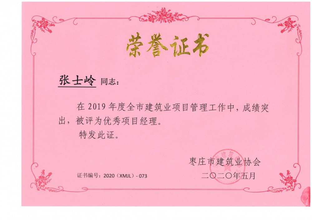張士嶺-2019年度市級優(yōu)秀施工企業(yè)及項目經(jīng)理