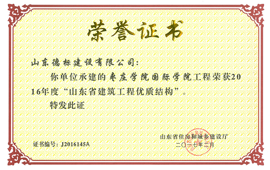 2016年度山東省建筑工程優(yōu)質(zhì)結(jié)構(gòu)-棗莊學(xué)院國(guó)際學(xué)院