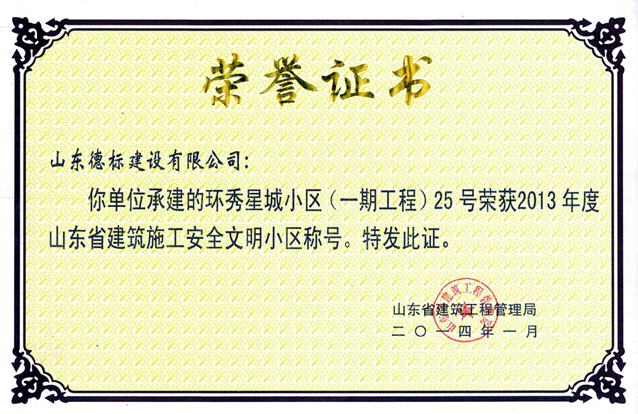 2013年度環(huán)秀星城25#樓安全文明小區(qū)