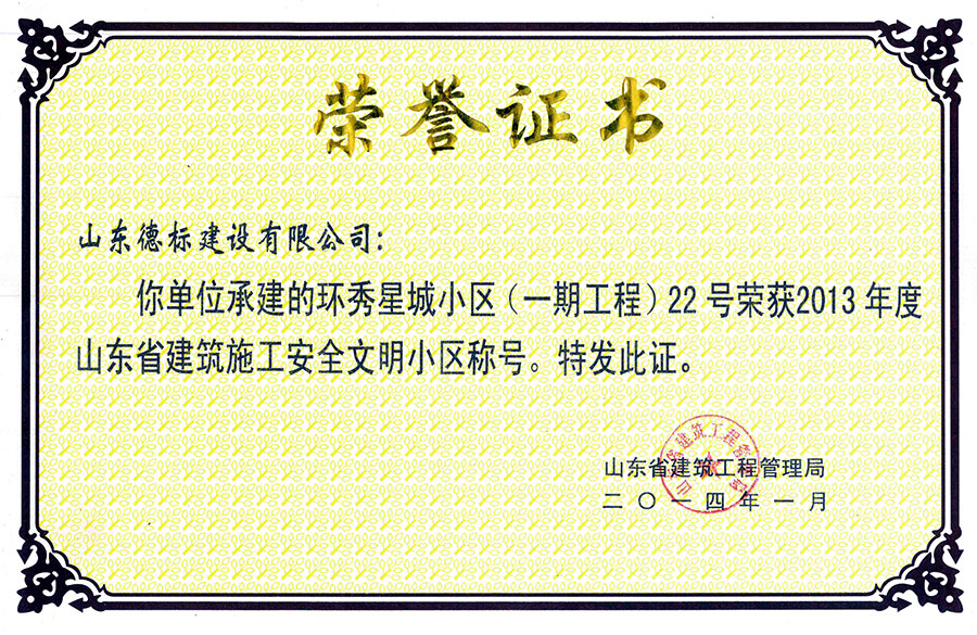 2013年度環(huán)秀星城22#樓安全文明小區(qū)