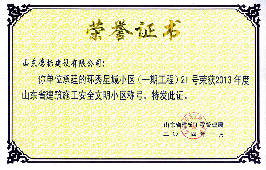 2013年度環(huán)秀星城21#樓安全文明小區(qū)