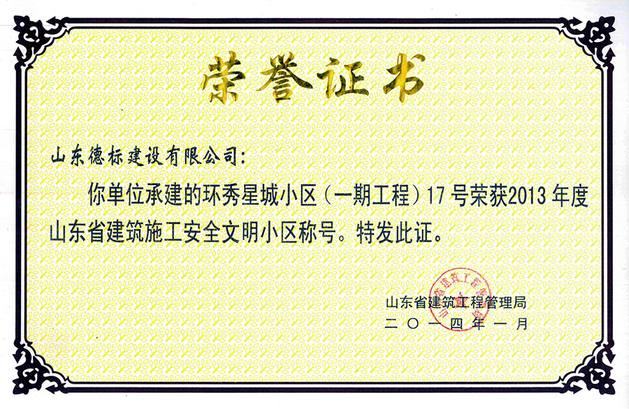 2013年度環(huán)秀星城17#樓安全文明小區(qū)