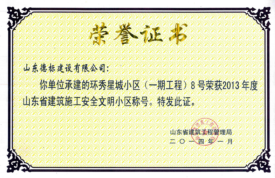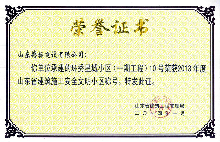 2013年度環(huán)秀星城10#樓安全文明小區(qū)
