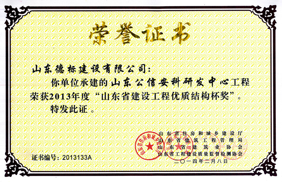 2017年度棗莊市建設(shè)工程優(yōu)質(zhì)結(jié)構(gòu)杯-仁建大廈